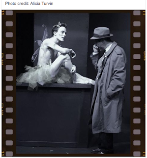 The story follows somewhat closely the same one as the classic, film-noir movie, “The Maltese Falcon.” And the style is the same with a hard-boiled shamus, Birnam Wood (Paul Roder), who also discovers his partner, Archie, has been killed while working on a case. The plot is steeped in that genre with narration by the lead character, garbed in the traditional crumpled trench coat (like Columbo), and sloppy hat, who is a hard-drinker, down-on-his-luck, and smokes too much.
